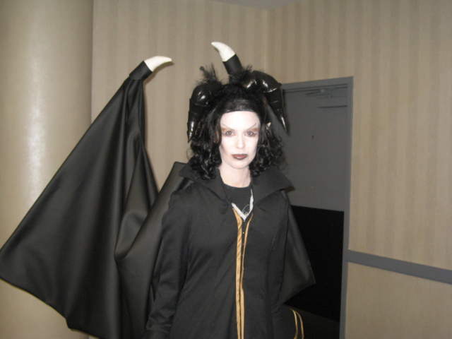 Laura of the "no skills, no budget, no problem" cosplay panels, as some demon clown from hell